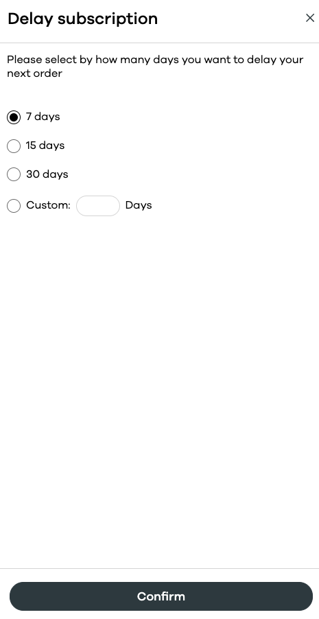 Step 3. Delaying your order; click on Delay next order and then select how long you will like to delay it for and click "Confirm"