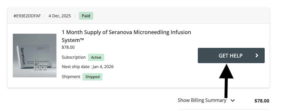 Step 3: Navigate to the subscription you wish to modify and click "Get Help"