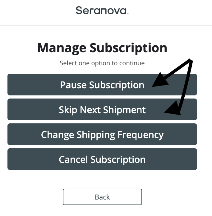 Step 5. Click on "Skip Shipment" or "Pause Subscription"