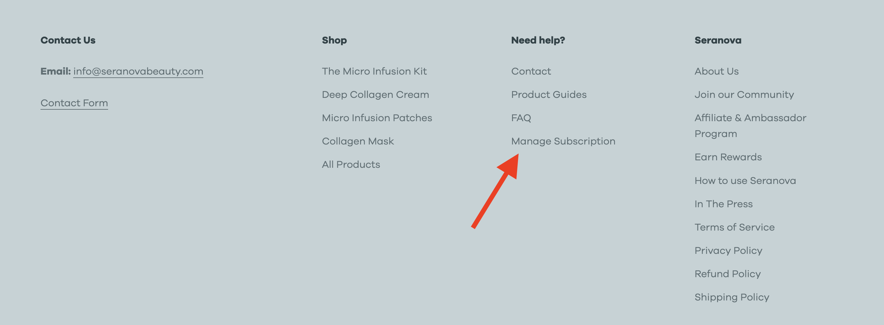 Step 1. Navigate to the bottom of our website and look for the option called "Manage my subscription"