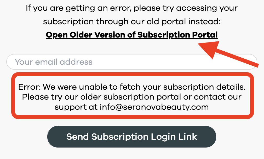 Step 3.2 If you get an error message saying we were unable to fetch your subscription details, please try using our Old Subscription Portal, enter your email again, your subscription details will be there.