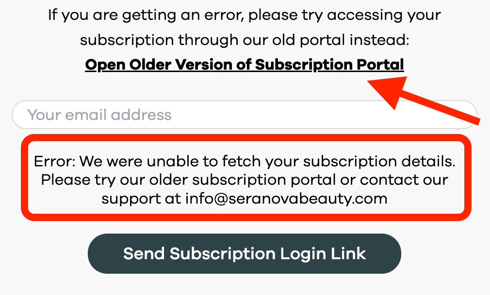 Step 3.1 If you get an error message saying we were unable to fetch your subscription details, please try using our Old Subscription Portal, enter your email again, your subscription details will be there.